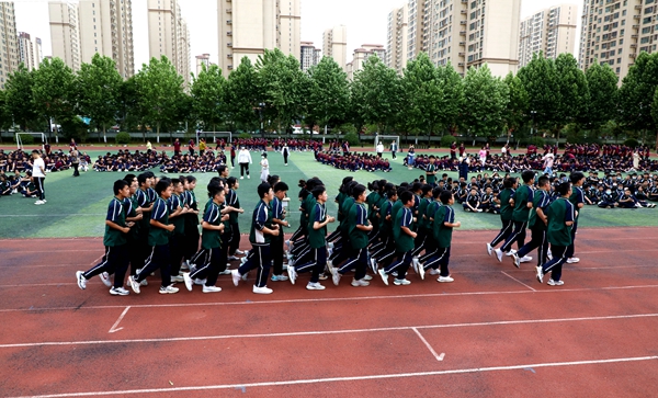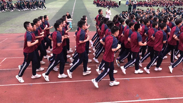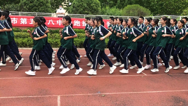 5月25日下午课外活动时间,郑州市第五十八中学在田径场举行了跑操比赛晋级赛第二轮比赛。第一轮比赛获得晋级资格的30个班级参加了比赛。第二轮比赛将有16个班级晋级到第三轮比赛。