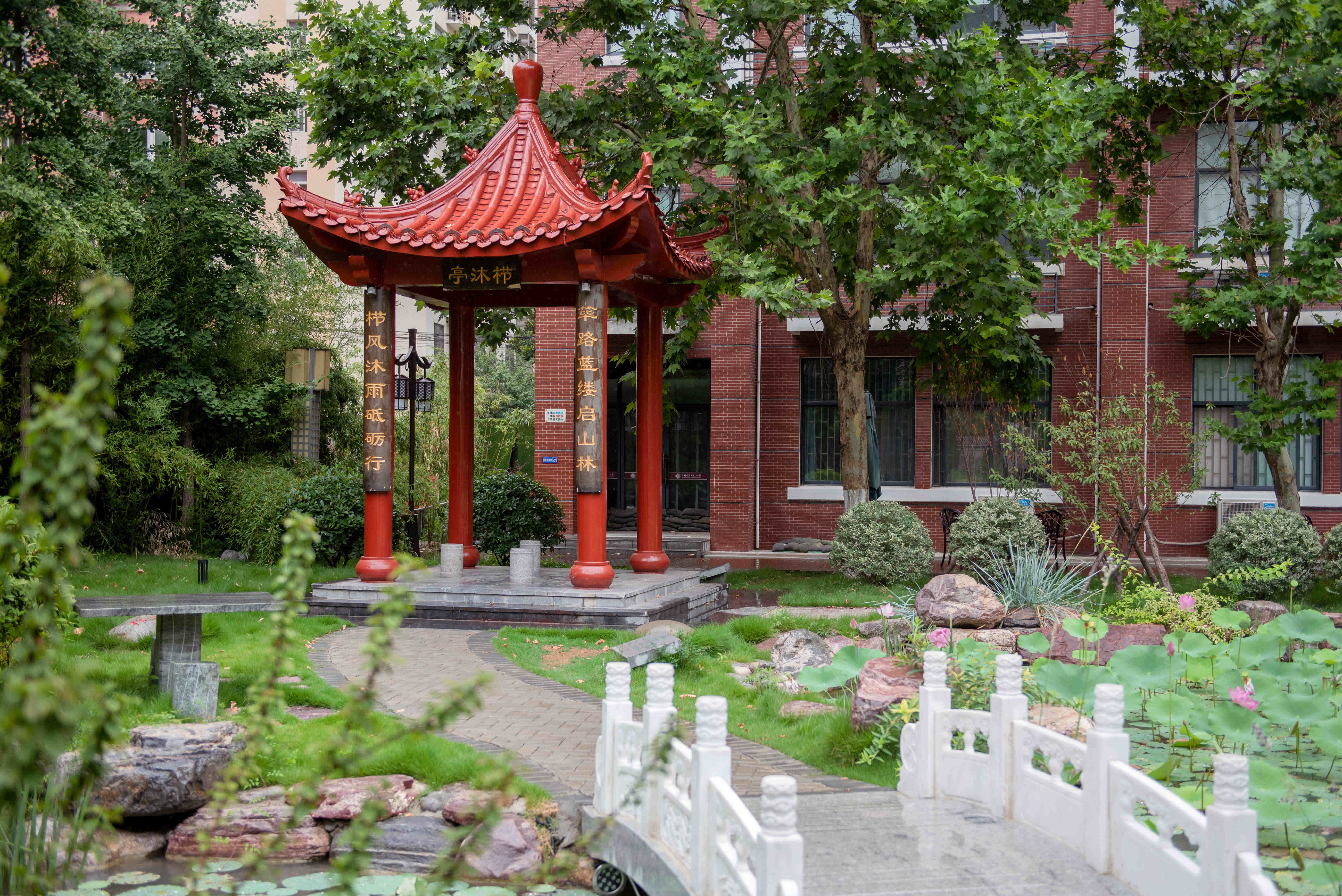 楼舍煌煌,错落有致。佳木蓁蓁,苑囿含翠。风过花廊,问渠水畔芙蓉流香;畦盈蕙兰,静心亭旁鸟鸣竹篁。雕塑肃列,井然有序。香樟丹桂,相得益彰。绿草楼宇,冬梅赋萼浑然一体;亭台掩映,秋菊吐蕊曲径通幽。栉沐园精致,悠然能憩;喷泉池泻玉,佳景可赏。陶然书香氤氲,美不胜收而入嘉园。此情此景,彩瑞霞霭,风光祯祥。无不怡得而醉焉。